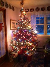Now, our lights are tiny, twinkling and cool. The ornaments still roll onto the floor – but now we blame our cats when Santas or snowmen fall, kerplunk, on the hardwood floor. As the days pass, he fragrance of evergreen fills the house, and shedding needles settle onto the carpet.
