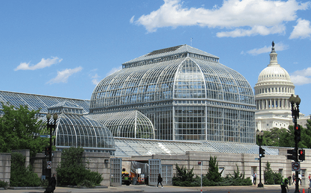 ◼ The United States Botanic Garden, like the National Arboretum, was established and continues to be funded and managed by the Federal Government. A botanical garden collects, cultivates, and exhibits plant species from regional and exotic locations, something like a living library for horticulturalists. Presidents Washington, Jefferson, and Madison were amateur botanists and ran successful farms. They encouraged the establishment of a national botanical garden, and by 1820 the project was underway. These three Founding Fathers understood the importance of agriculture and the propagation of plants, both native and imported, that could feed a growing nation.