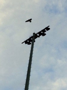 I watched the nest carefully, day-after-day, and I think I could hear the familiar peeping of a hungry fledgling. But, Oscar and Opal were gone! They had deserted their nest, leaving, it seemed to me, one fledgling behind. I continued to hear the chirping cries for about 4 days, and then no more. The nest was deserted and silent. I suspect there was something wrong with the baby Osprey, and the only solution for Opal and Oscar was to leave their nest and their offspring. Very sad. And, as a final anguish, around Thanksgiving time, the maintenance staff of the Naval Academy came with their cherry-picker truck and destroyed the nest – took away every last stick, cleared the pole of any remnants of our Osprey couple.